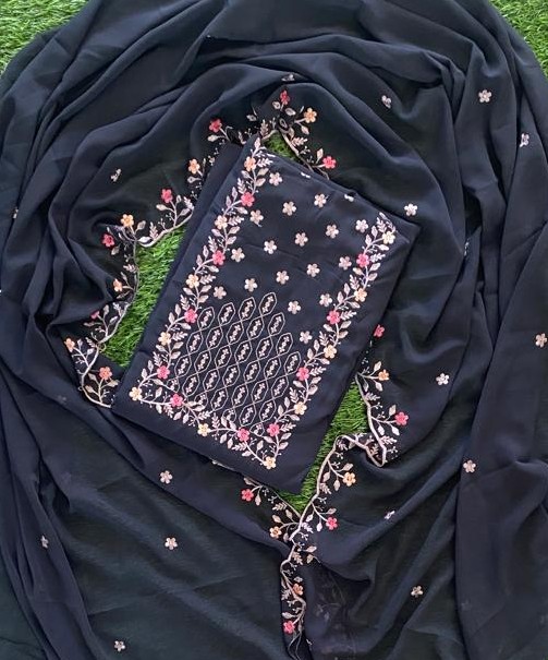 Black Colour Georgette Churidar Material Set. Top Length -2.50 meter Bottom Length-2.25 meter Shawl Length - 2.30 meter₹1,455
