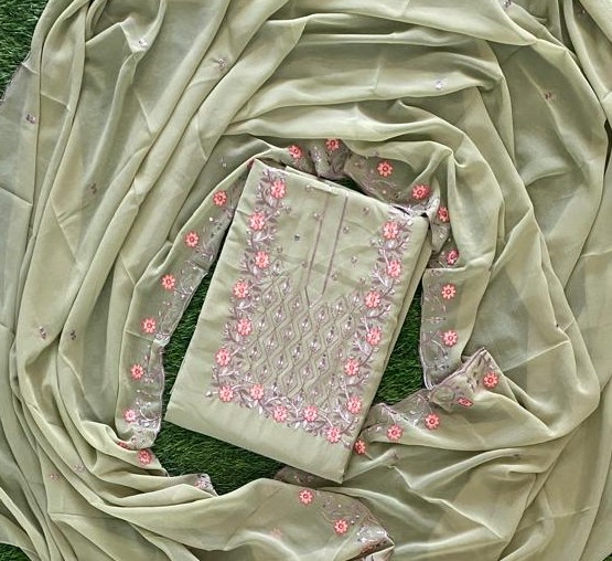 Georgette Churidar Material Set. Colour : Light Pistachio Green Shade Top Length -2.50 meter Bottom Length-2.25 meter715 Shawl Length…₹715Party Wear Embroidered Georgette Churidar Material Set DC842-03