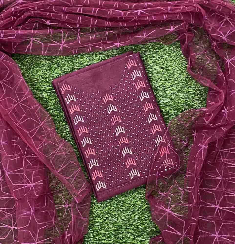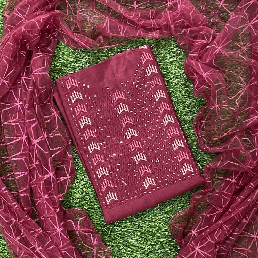 Office Wear Semi Silk Churidar Material Set.Colour : Dark Maroon Shade. Top Length -2.50 meter Bottom Length-2.25 meter Shawl…₹595Office Wear Semi Silk Churidar Material Set DC852-07