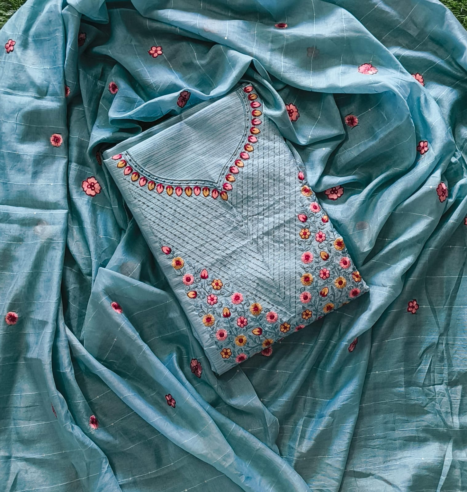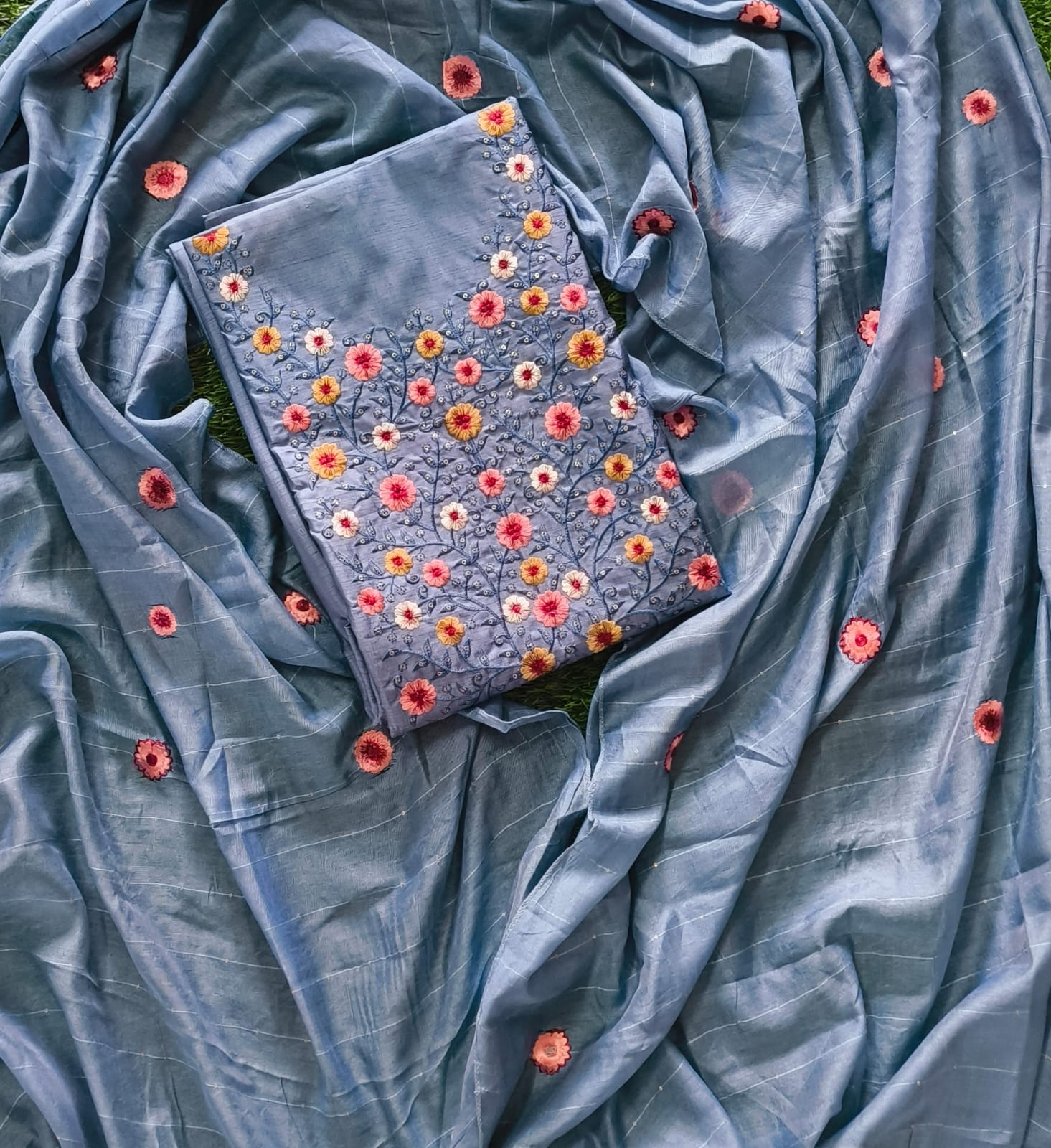 Semi Silk Churidar Material Set with Embroidery.Colour :Deep Blue Top Length -2.50 meter Bottom Length-2.25 meter Shawl Length -…₹925Semi Silk Churidar Material Set with Embroidery DC817-04