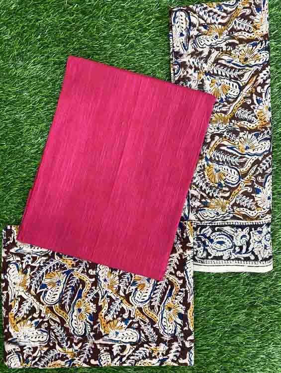 Slub Silk Churidar Set Top Material: Slub Silk-Length=48", Bottom : Material-Cotton (kalamkari print), Shawl: Cotton (kalamkari print)₹1,060