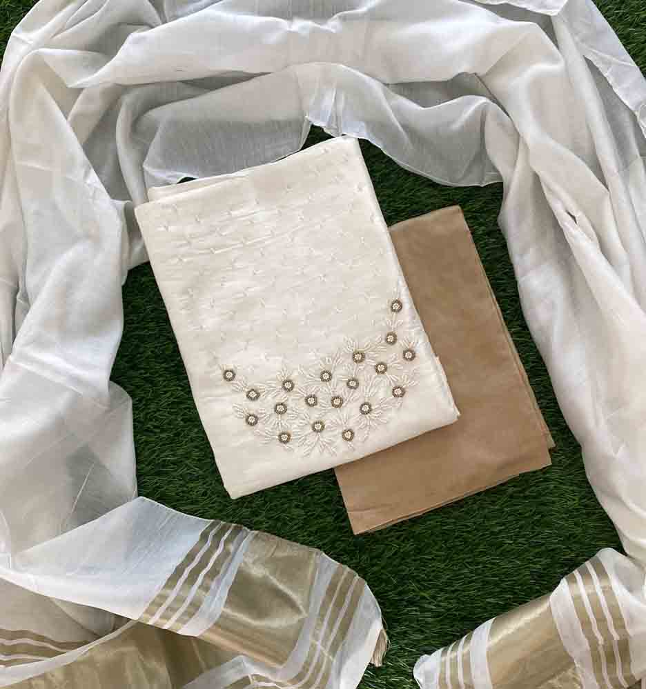 Slub Silk Churidar Materials Set (Off-White Color) DC664-07
