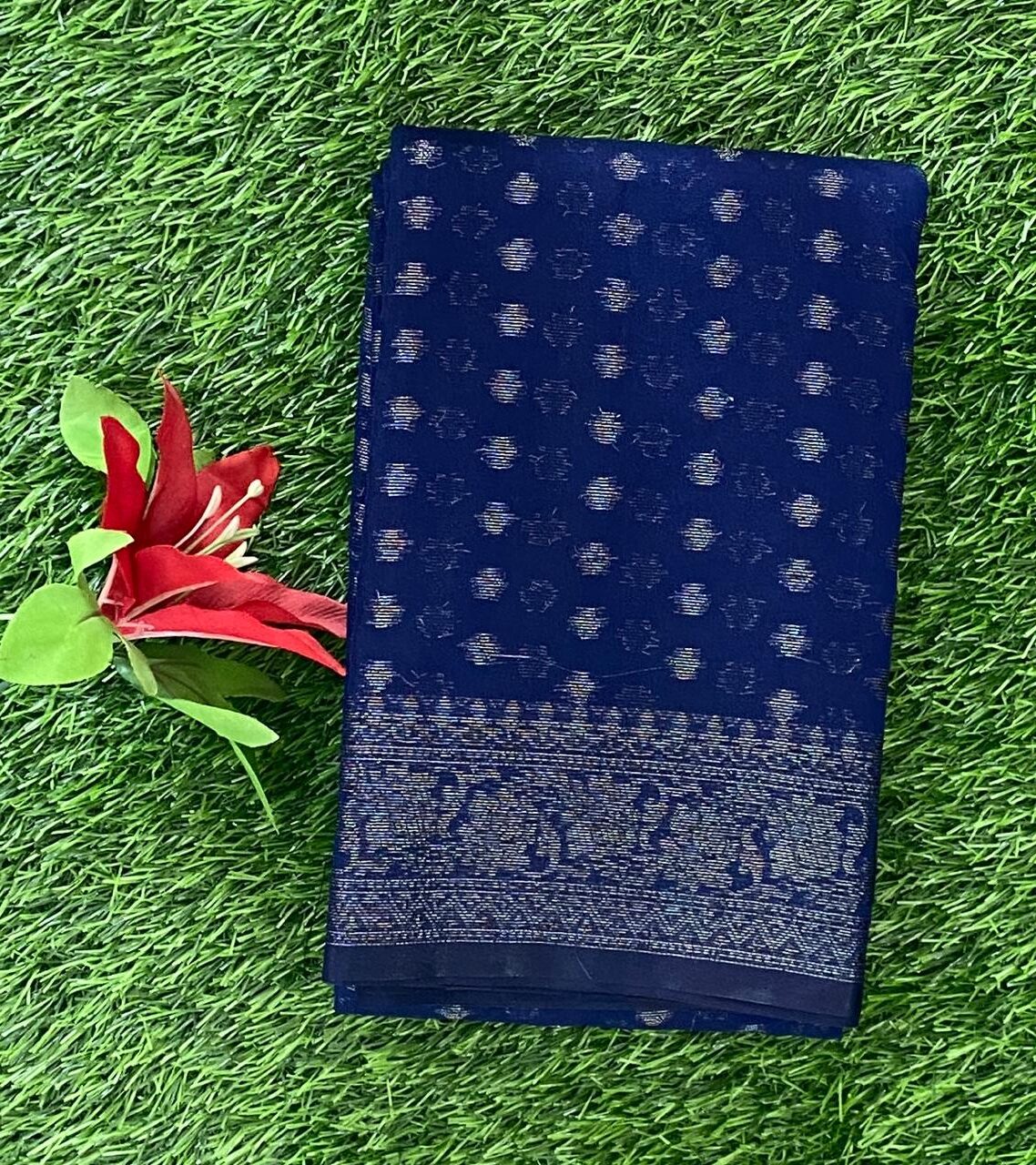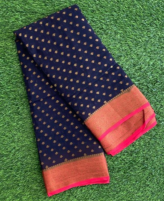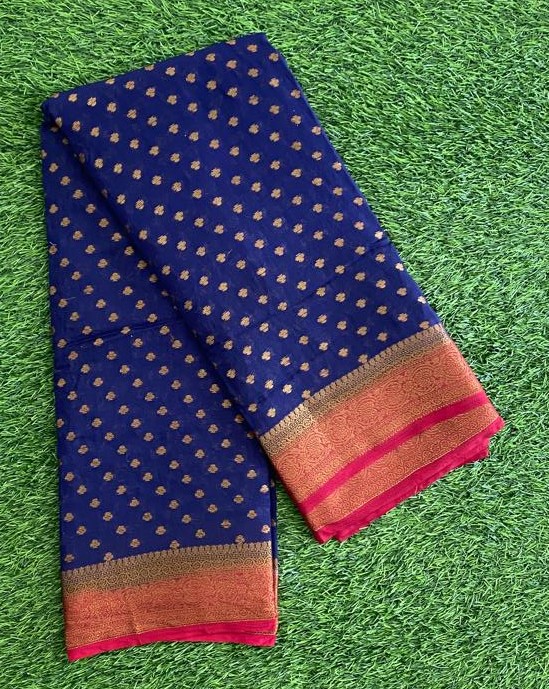 Elegant Party Wear Banarasi Silk Saree.Colour : Vibrant Navy Blue body & Border Black jerry weaving.₹1,915Elegant Party Wear Banarasi Silk Saree DS877-01