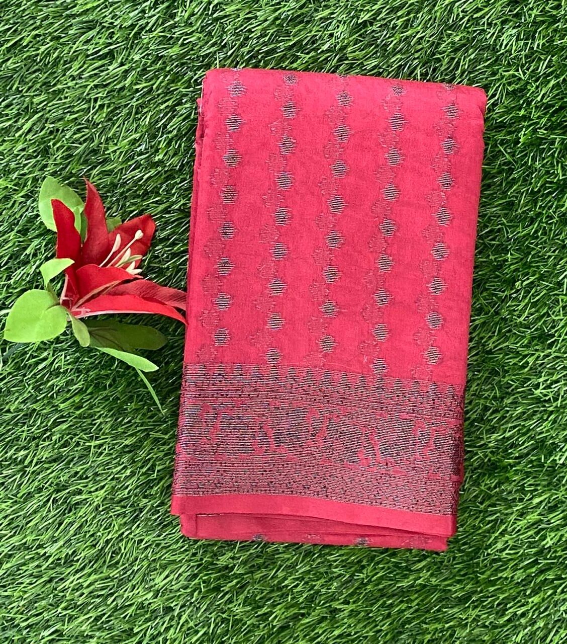 Elegant Party Wear Banarasi Silk Saree.Colour : Vibrant pinkish red body & Border Black jerry weaving.₹1,915Elegant Party Wear Banarasi Silk Saree DS877-05