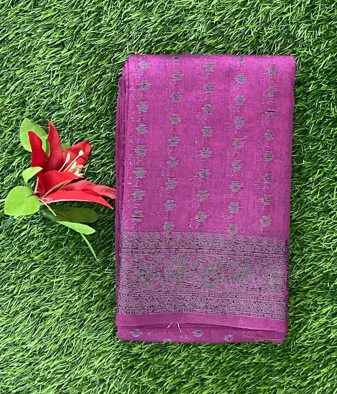 Elegant Party Wear Banarasi Silk Saree.Colour : Vibrant Light Purple body & Border Black jerry weaving.₹1,915