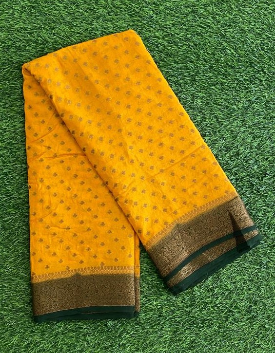 Soft Silk Party Wear Banarasi Silk Saree.The main body of the saree is a mango yellow shade and Border is…₹1,435Soft Silk Party Wear Banarasi Silk Saree DS908-05