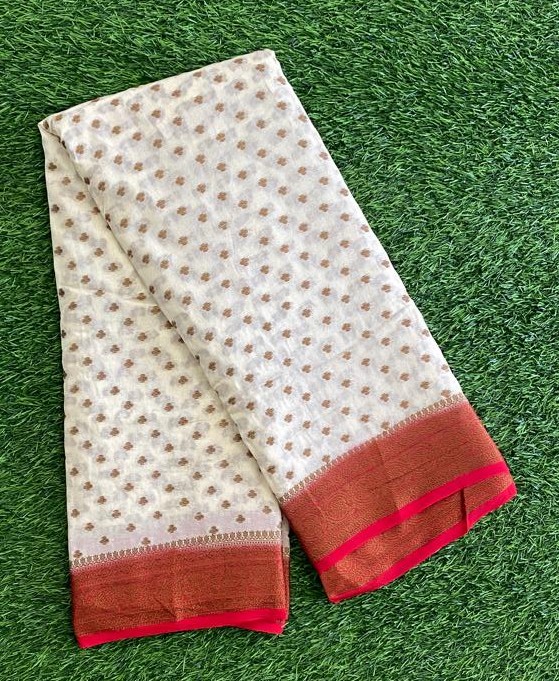 Soft Silk Party Wear Banarasi Silk Saree. The main body of the saree is a cream shade and Border is…₹1,435Soft Silk Party Wear Banarasi Silk Saree DS908-08