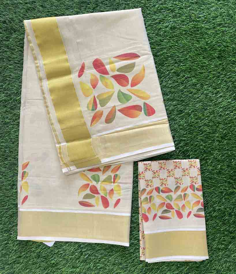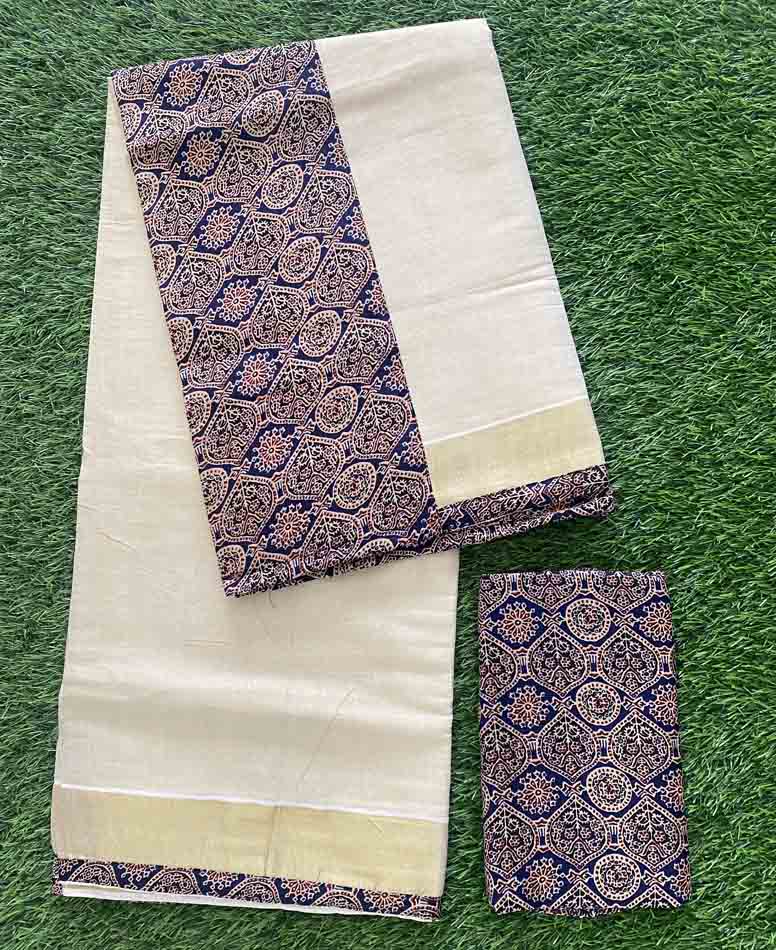 Kerala Set Saree (Ajarakh Print Tissue Silk Saree)