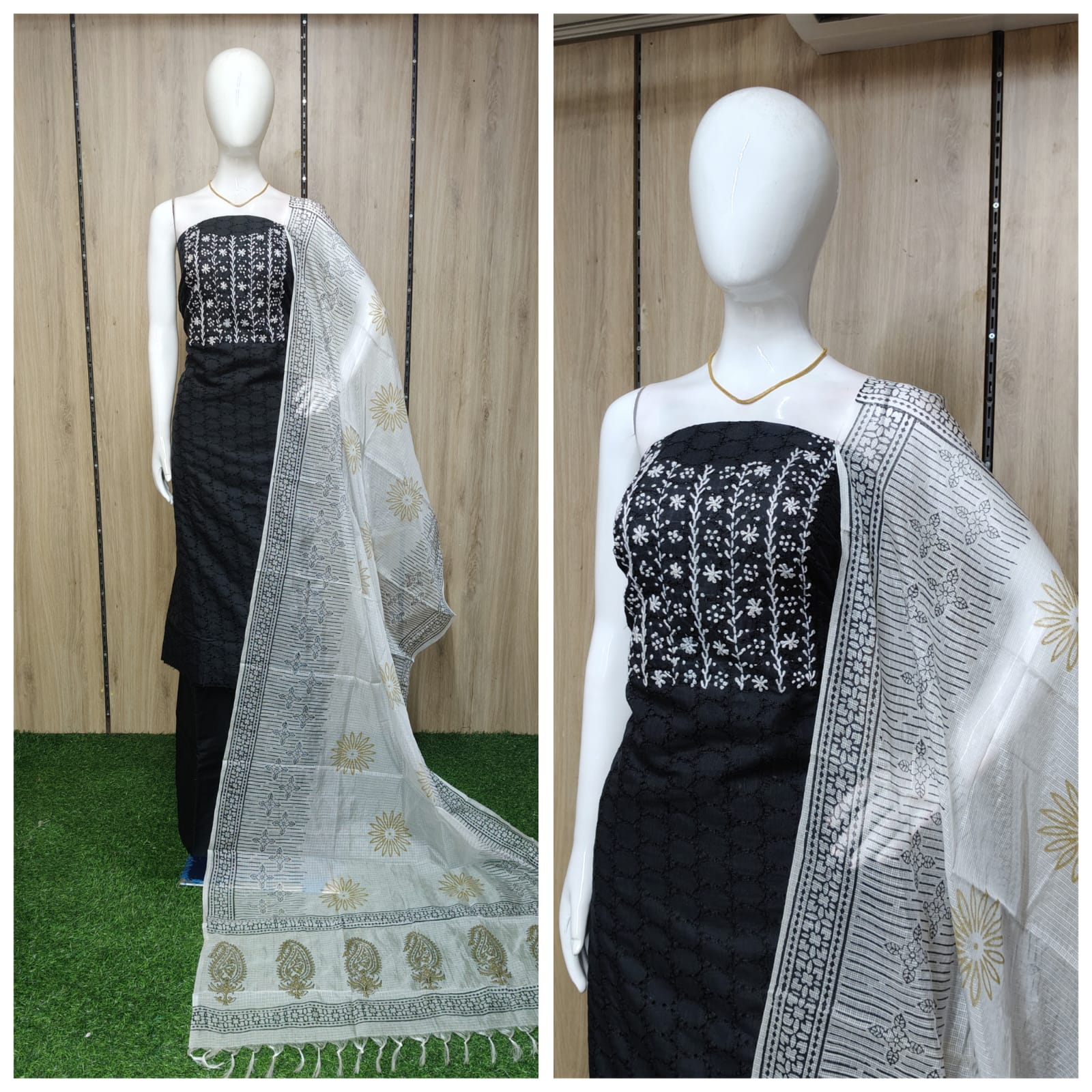 Cotton Hakoba Churidar Materials Set with Hand Embroidery