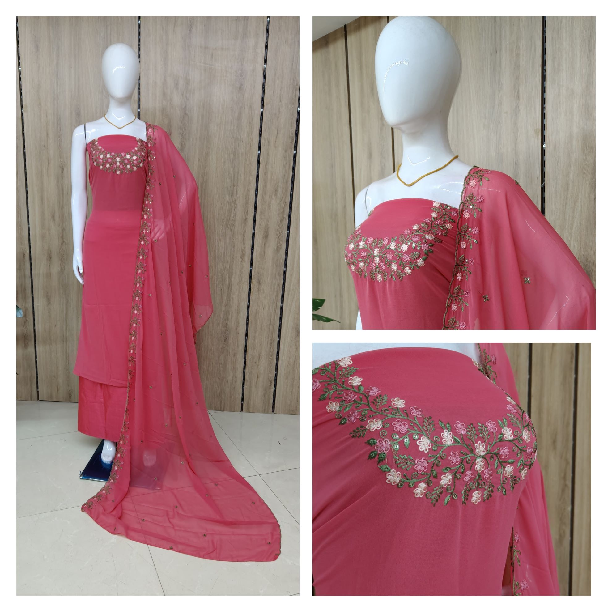 Unstitched Embroidered Georgette Churidar Materials Set